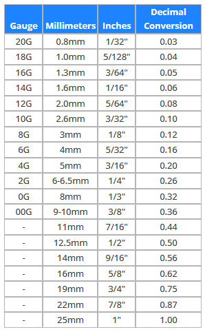 • Gauge refers to the thickness of jewelry. We use U.S. standard wire gauge.