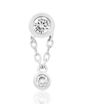 A solid gold bezel 3mm and 2mm CZ gems with a touch of movement thanks to a solid gold chain, this single-pinned dangle is a perfect addition to any ear! This pieces measures 3.8mm x 12.3mm.