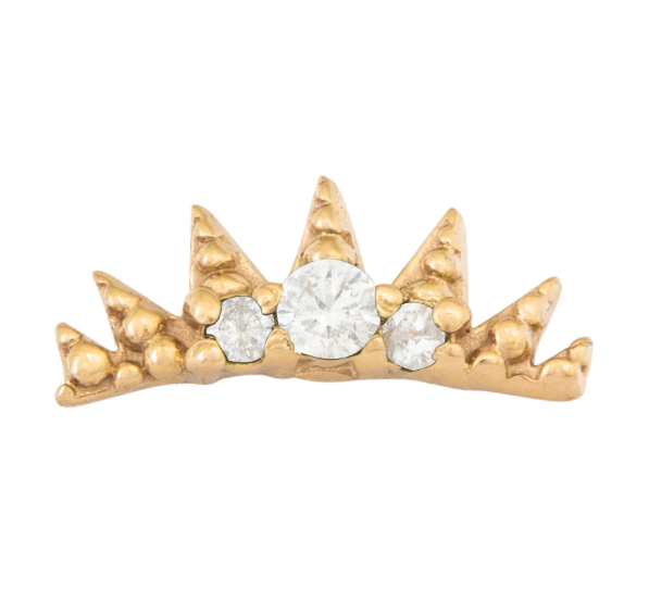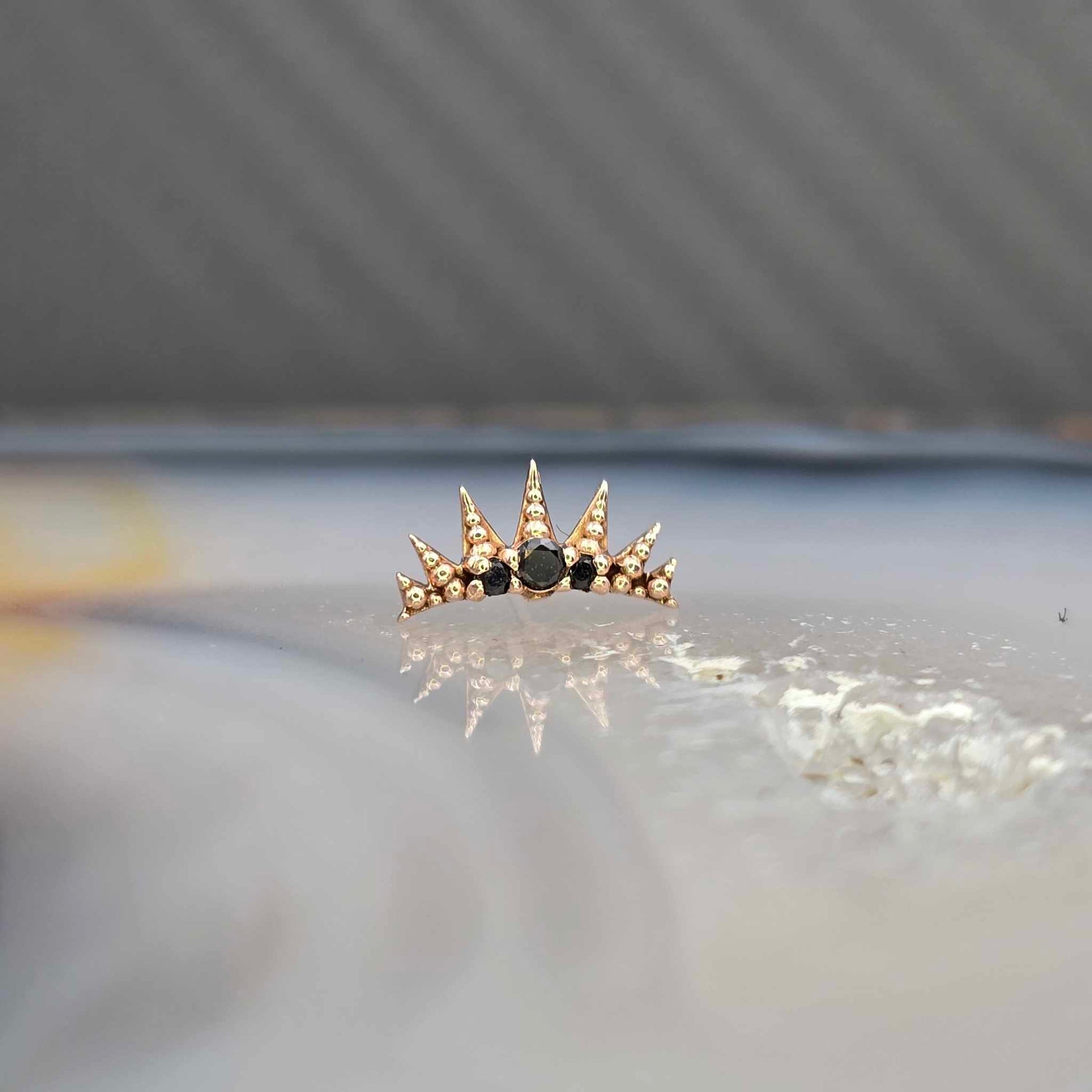 Medieval threadless pin with gemstone is reminiscent of the ornate crowns worn by royalty. This exquisite design curves nicely along a helix or curated ear.