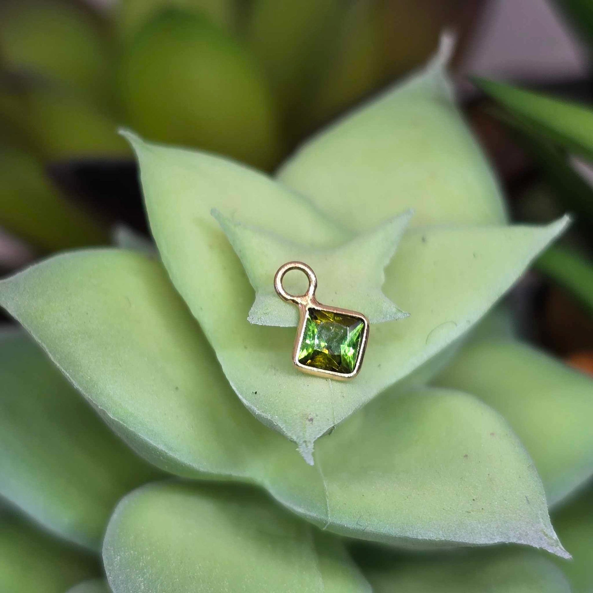 Square cut faceted gemstone in bezel earring charm with jump ring on a corner.