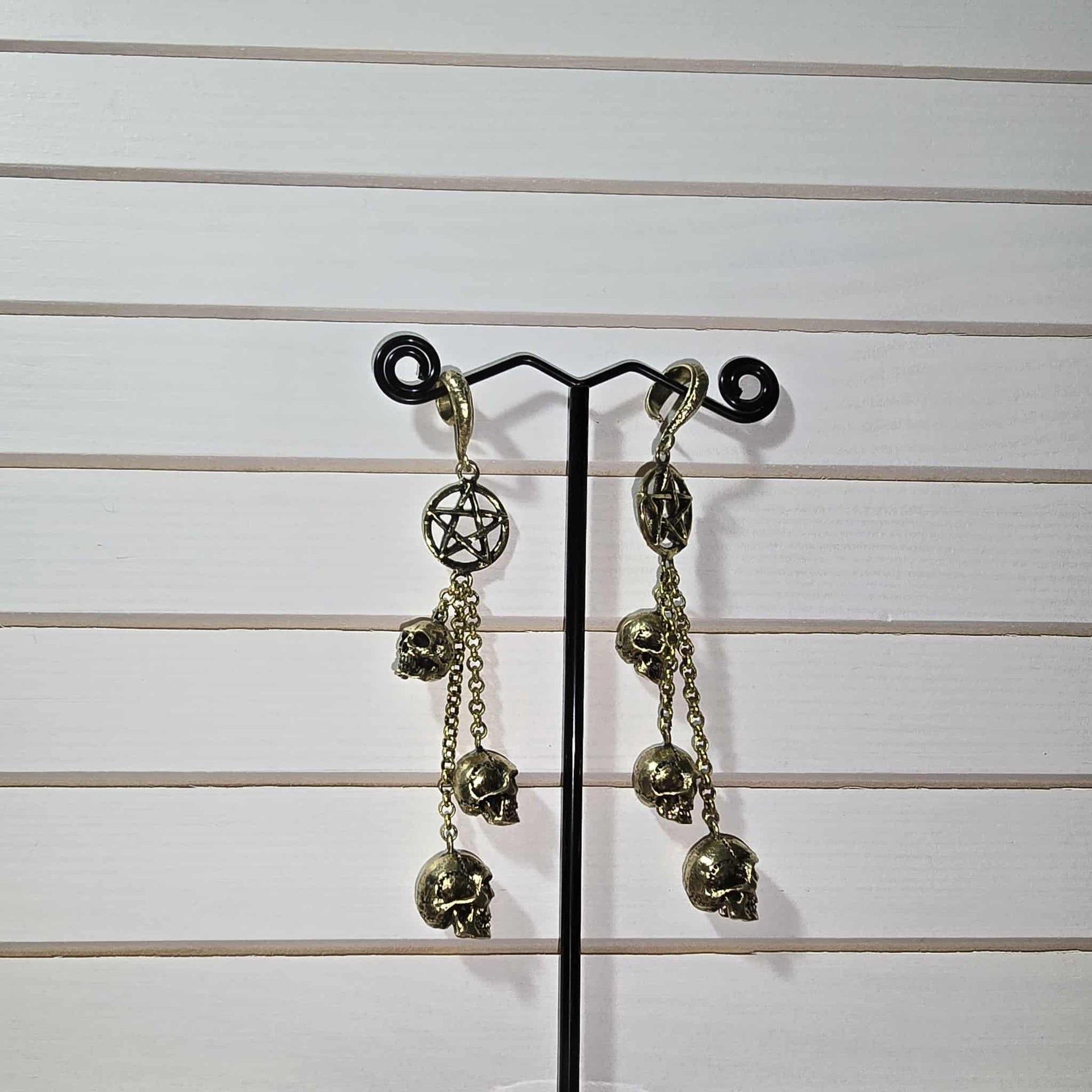Triple Skull Pentagram Earrings - Brass & Copper Hangers